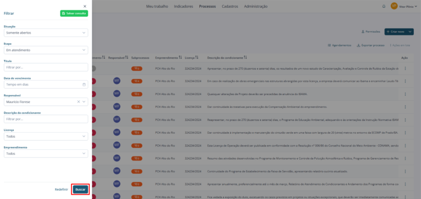 Os processos que atendem a todas as exigências dos filtros serão exibidos.