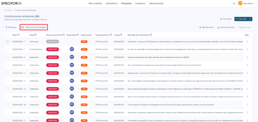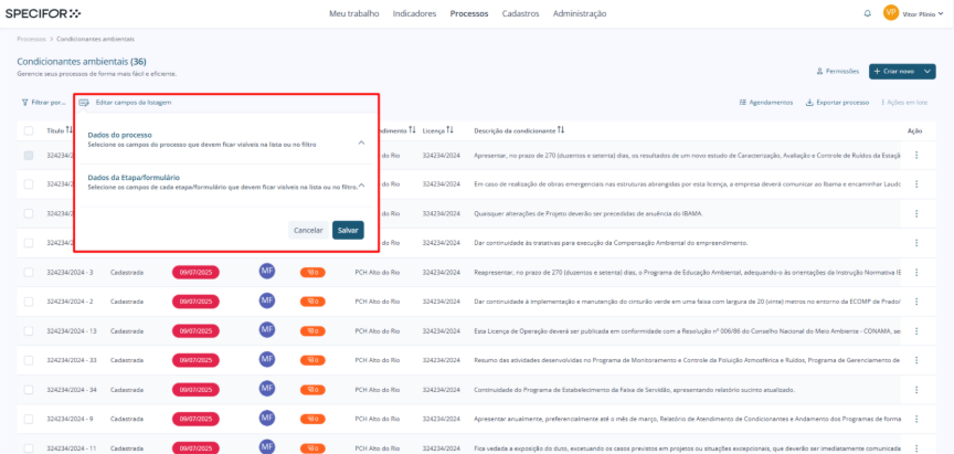 Este artigo orienta você na utilização dos filtros e campos da listagem de processos no Specifor, que permite encontrar e organizar seus processos de forma eficiente para uma melhor visualização e gestão.