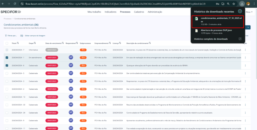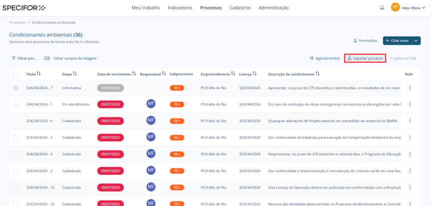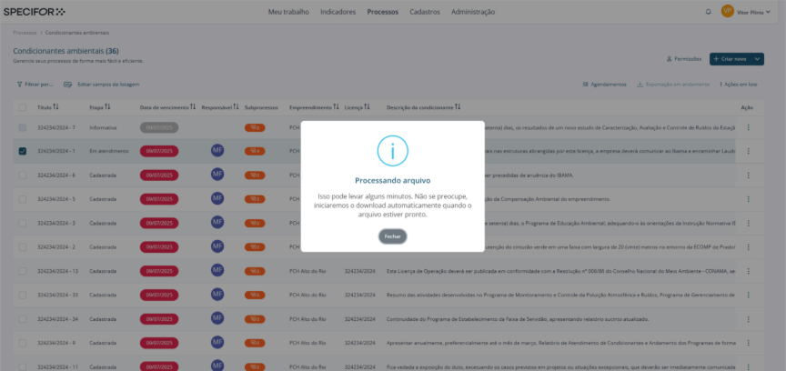 Este artigo orienta você na exportação de processos no Specifor, que permite gerar cópias dos seus processos para backup, análise externa ou migração de dados.