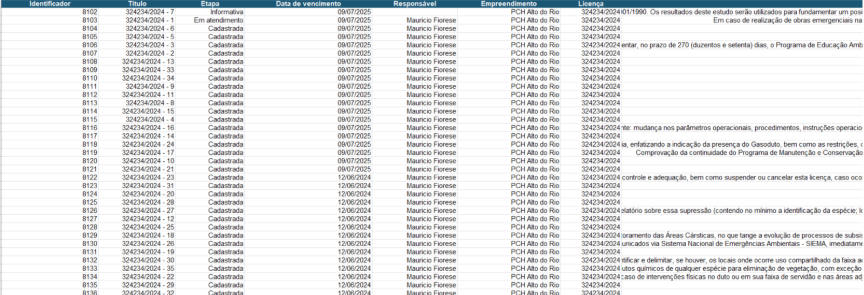 Exemplo de planilha com processos: