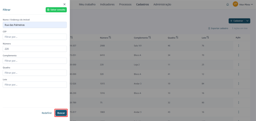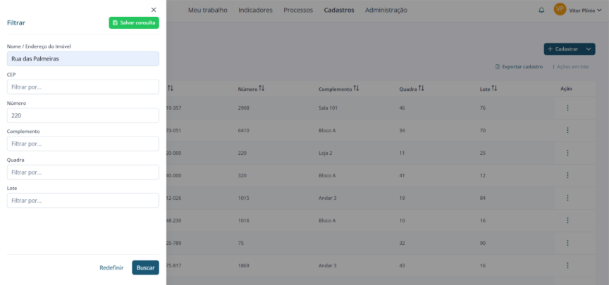 Os cadastros que atendem a todas as exigências dos filtros serão exibidos.