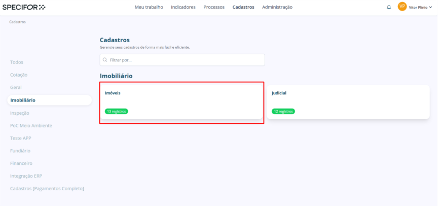 Para editar um cadastro, selecione o cadastro ao qual ele faz parte, clicando em seu card.