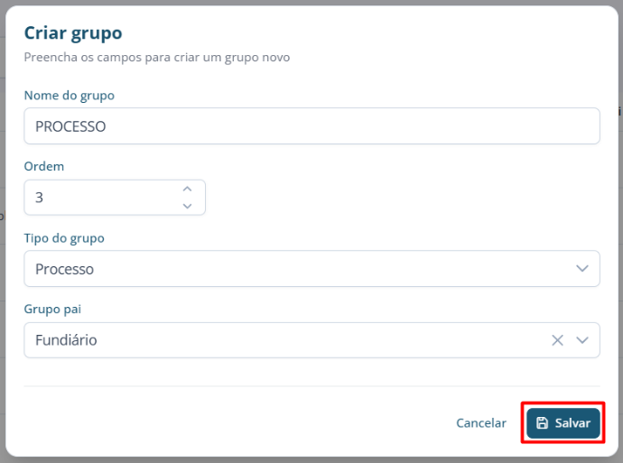 3. Ao finalizar o preenchimento das informações do grupo, clique em “Salvar”