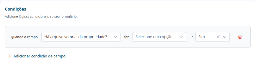 - Em "Quando o campo", selecione o campo do seu formulário que servirá como base para a condição.