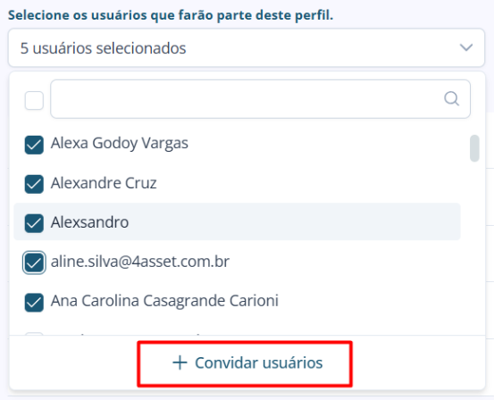 Caso o usuário desejado não esteja na lista, clique em “Convidar usuários” ao final do menu suspenso.
