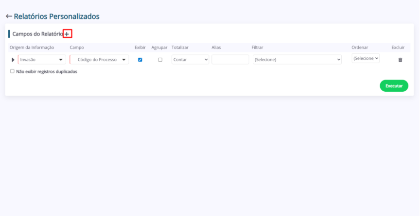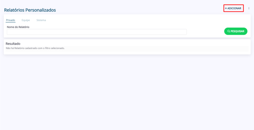 1. No módulo “Relatórios Personalizados”, clique em “+ Adicionar”.