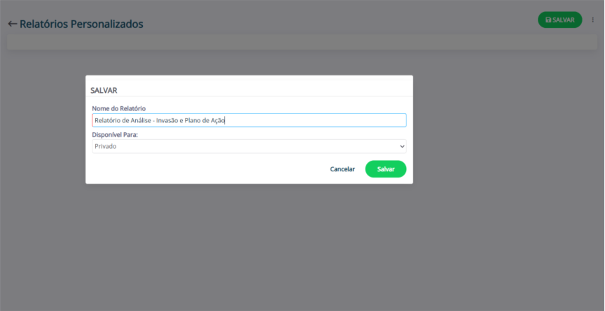 - Disponível para: quem poderá acessar o relatório (Privado, membros de uma Equipe, Permissão de Grupo (Relatório do Sistema);
