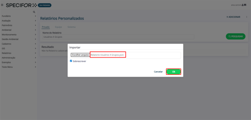 Importar um relatório