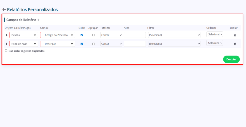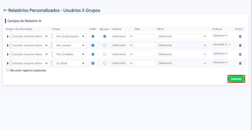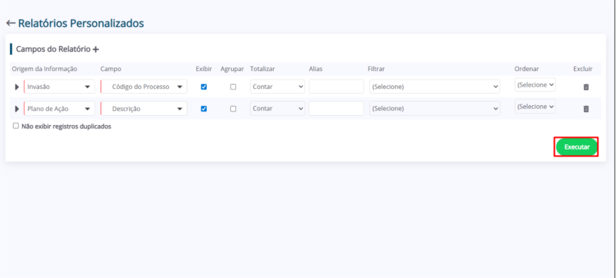 5. Ao finalizar, clique em “Executar” para visualizar o relatório.