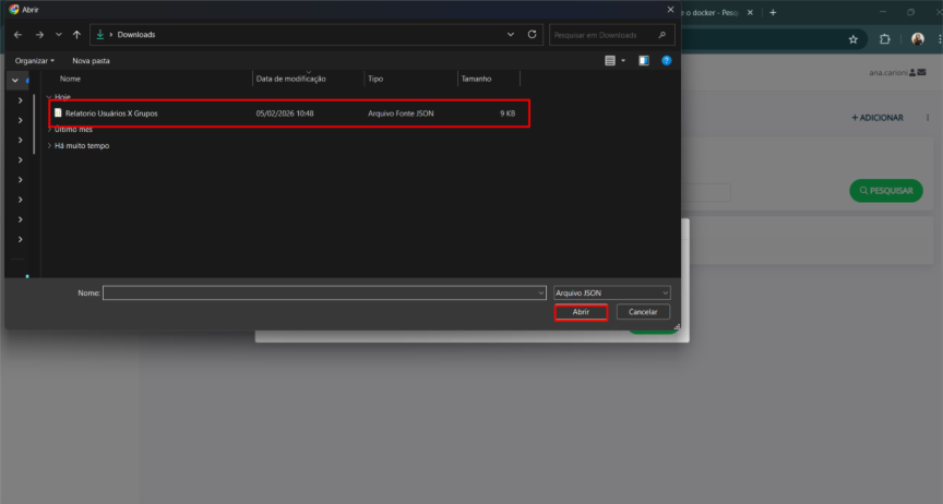 2. Selecione o arquivo .json que deseja importar para o Specifor e clique em “Abrir”.