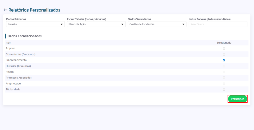 Ao finalizar a seleção, clique em “Prosseguir”.