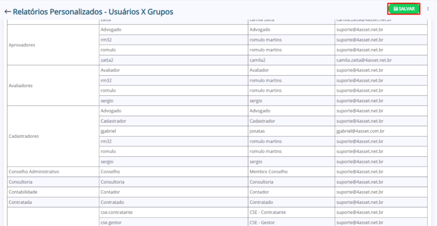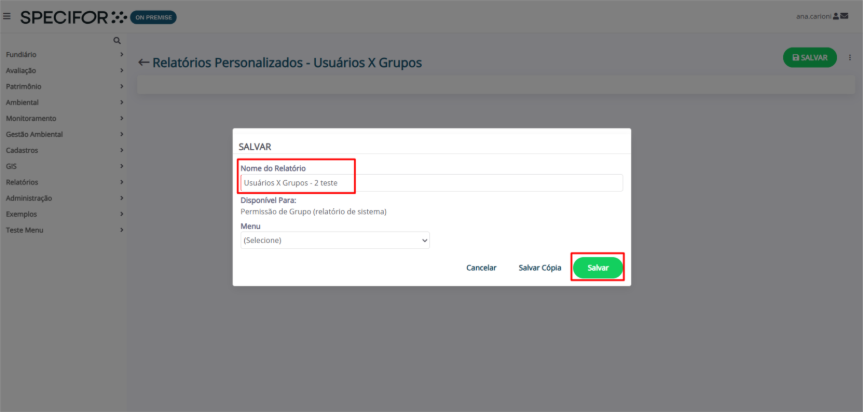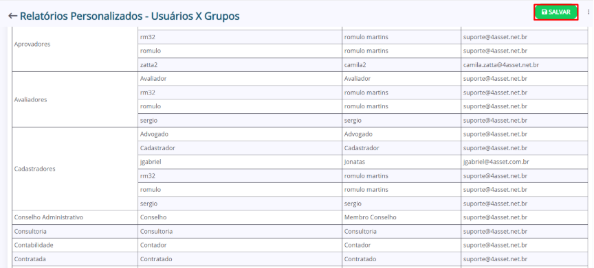 6. Se o relatório estiver de acordo com o planejado, clique em “Salvar”.