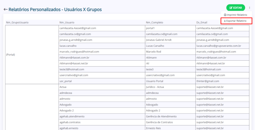 Exportar um relatório (Excel)
