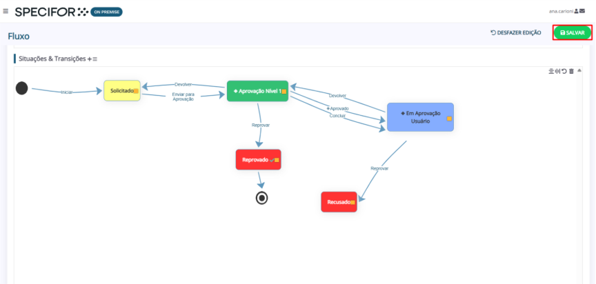 7. Ao finalizar, clique em “Salvar” na página de edição do fluxo.
