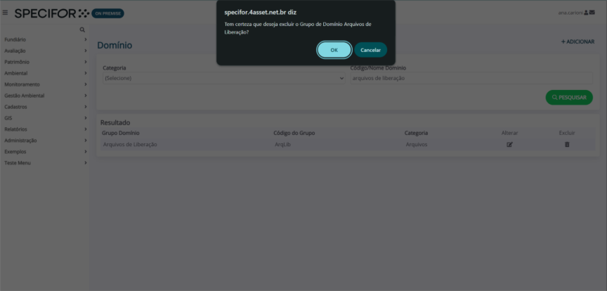 4. A lista de domínios será importada para o Specifor e passará a integrar a lista do domínio selecionado.