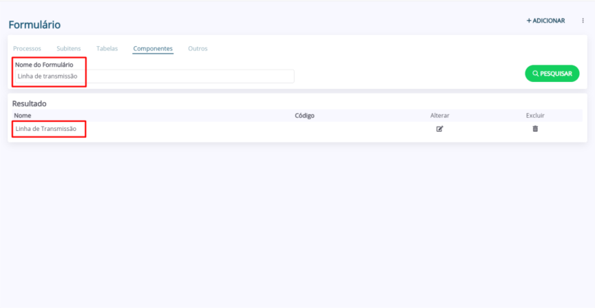 Nesse módulo, podem ser criados quatro tipos de formulários: processo, subitem, componente e tabela, cada um voltado a um tipo específico de informação e uso dentro do sistema.