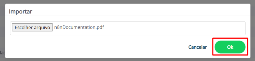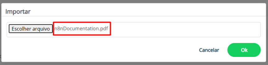 3. Para garantir que tudo correu bem na importação do arquivo, certifique-se de que o nome do arquivo do fluxo está aparecendo ao lado do botão “Escolher arquivo”.