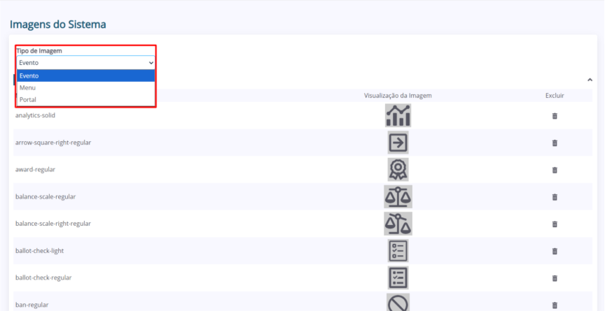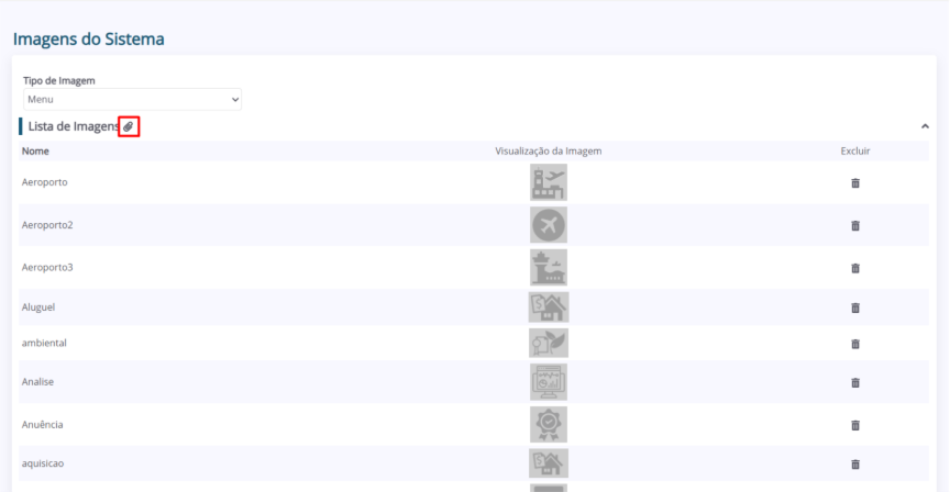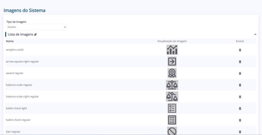 O Módulo “Imagens do Sistema” tem como objetivo gerenciar as imagens utilizadas no sistema.
