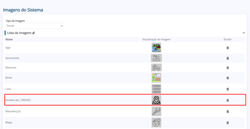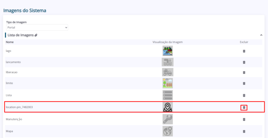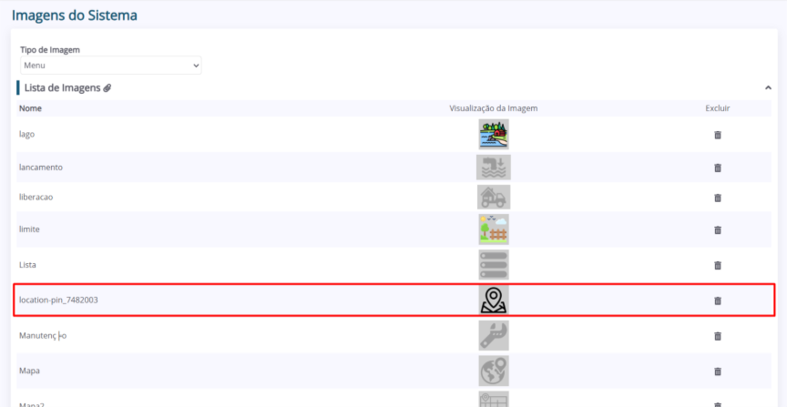 2. A página “Imagens do Sistema” será aberta. Nela, é possível consultar as imagens cadastradas no sistema.