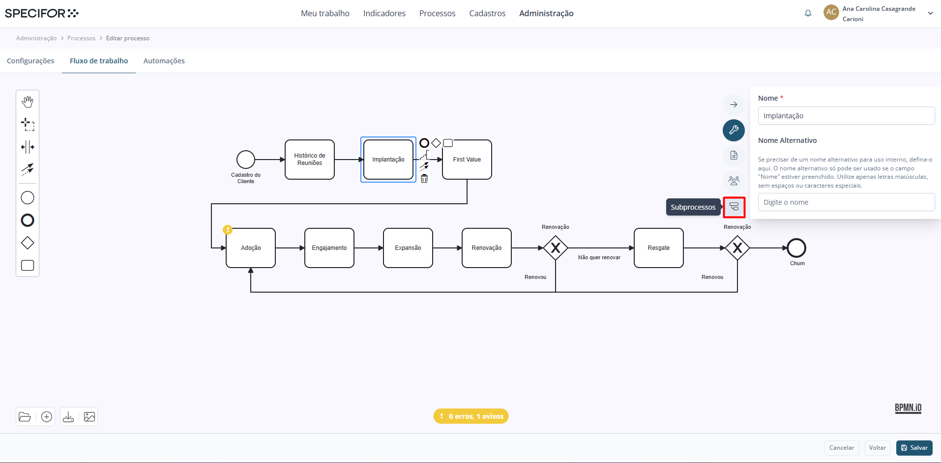 Este artigo explica como adicionar um subprocesso a um processo, de maneira a estruturar relações entre processos, garantindo melhor organização, rastreabilidade e gestão integrada dentro do Specifor.